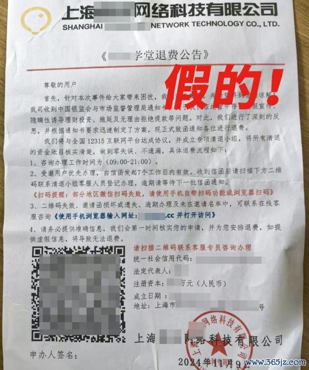 诈骗分子通过非法渠道获取个人信息后,将伪造政府部门、公司、机构文件邮寄给受害人,以办理培训退费、投资退费为由,诱导其加入退费群。