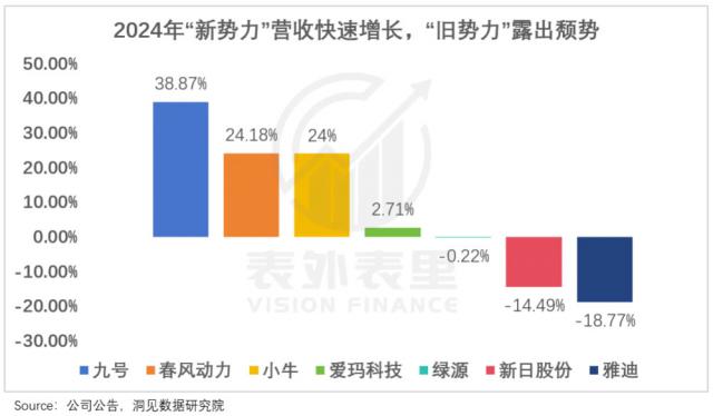 得益于此,去年"九牛极"营收均同比大增 20%+,而旧势力纷纷露出颓势。且分化还愈演愈烈,今年 618,九号卖出了 1 个新日,半个绿源,1/6 个爱玛(对比 2024 年营收)。