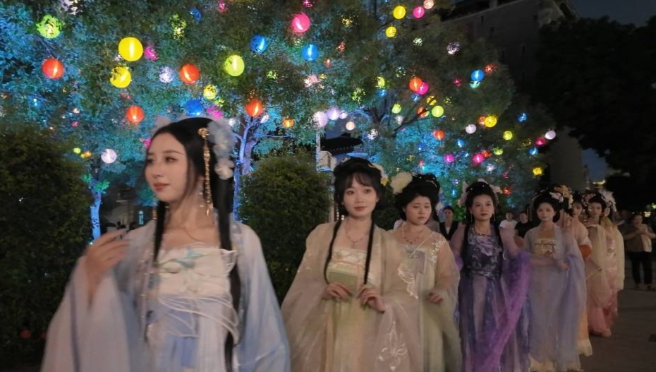 在白云区均禾街的百年历史建筑平和大押前,“国潮当道月光共潮”中秋特别活动——梦幻灯光游园会举行,通过发放文旅消费券、提供汉服体验优惠、开展主题打卡赠礼等惠民措施,实现“文化惠民、旅游乐民”,吸引了数千名市民参与。